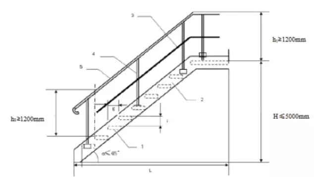 2、 監(jiān)測(cè)平臺(tái)與墜落高度基準(zhǔn)面之間距離超過(guò)2 m時(shí),不應(yīng)使用直梯通往監(jiān)測(cè)平臺(tái),應(yīng)安裝固定式鋼斜梯、轉(zhuǎn)梯或升降梯到達(dá)監(jiān)測(cè)平臺(tái)。梯子無(wú)障礙寬度≥0.9 m,梯子傾角不超過(guò)45度。每段斜梯或轉(zhuǎn)梯的最大垂直高度不超過(guò)5 m,否則應(yīng)設(shè)置緩沖平臺(tái),緩沖平臺(tái)的技術(shù)要求同監(jiān)測(cè)平臺(tái)。